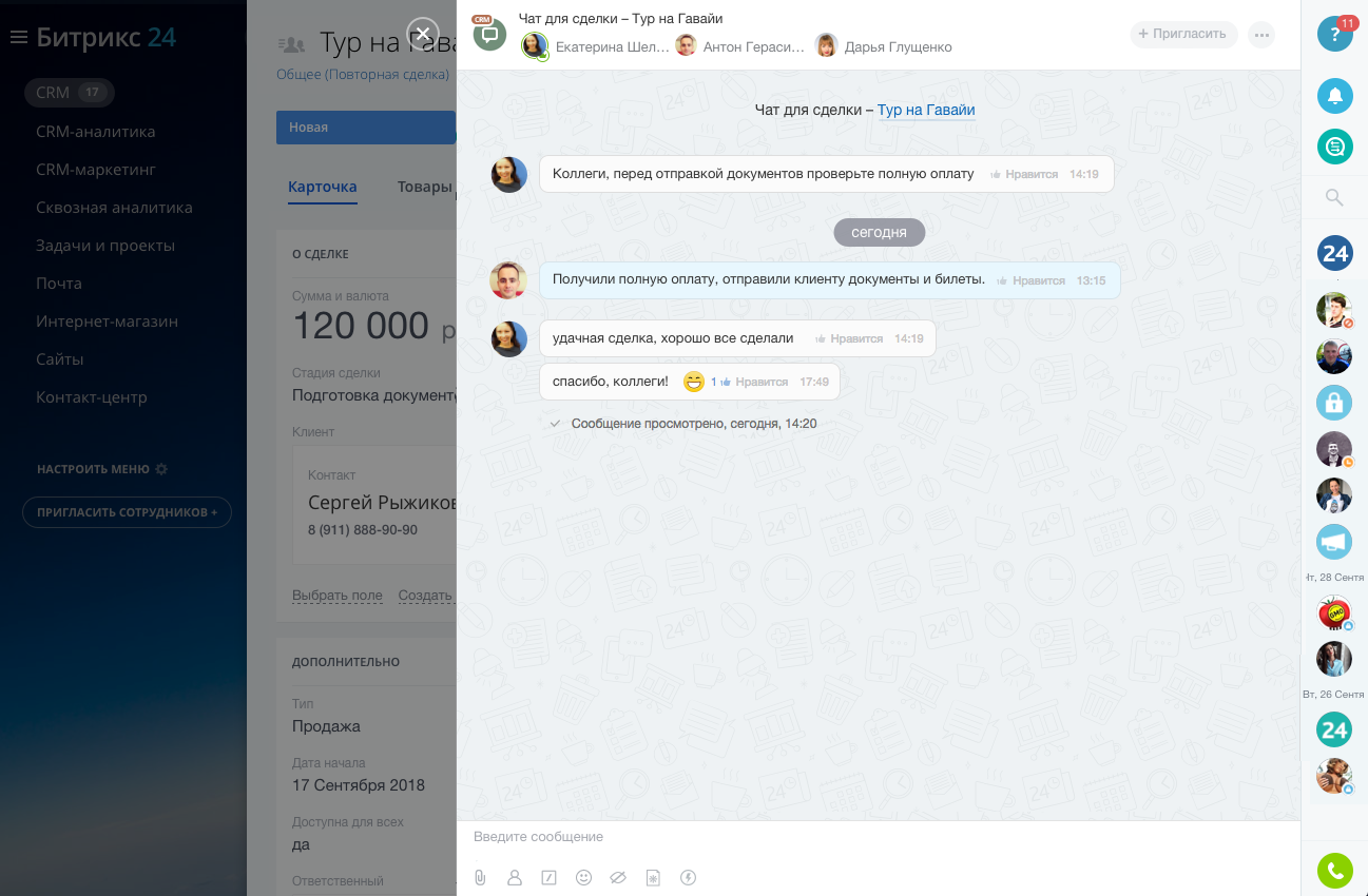 Это все, что нужно для организации работы компании. Инструменты тесно взаимосвязаны, а это значит, что вам не придется переключаться между разными сервисами.