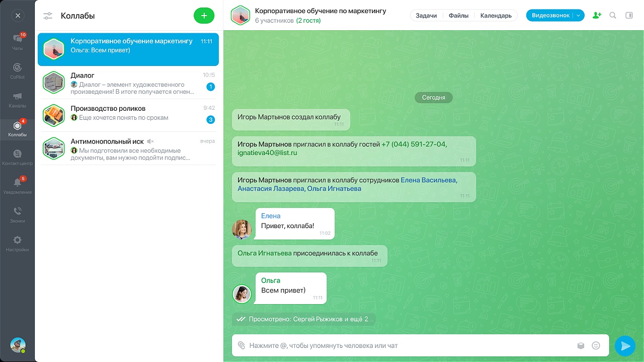 Коллабы — это отдельные пространства для совместной работы с внешними командами и клиентами внутри вашего Битрикс24.- Мессенджер.