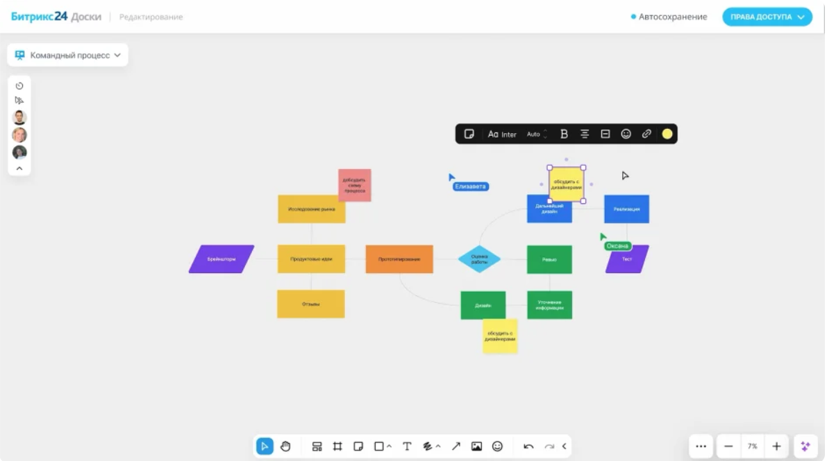 Битрикс24 Доски — новое визуальное пространство для совместной работы над идеями, стратегиями и процессами.Теперь внутри Битрикс24 знакомый многим формат — доски. Только лучше, потому что больше не нужно регистрироваться в сторонней системе, вспоминать логин и пароль, настраивать права доступа.