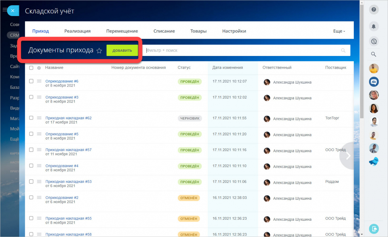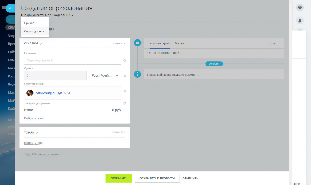 А если у вас ещё нет товаров или вы только начали работать в Битрикс24, то вы можете завести товары в систему с помощью документа оприходования и начать работать в складском учете.