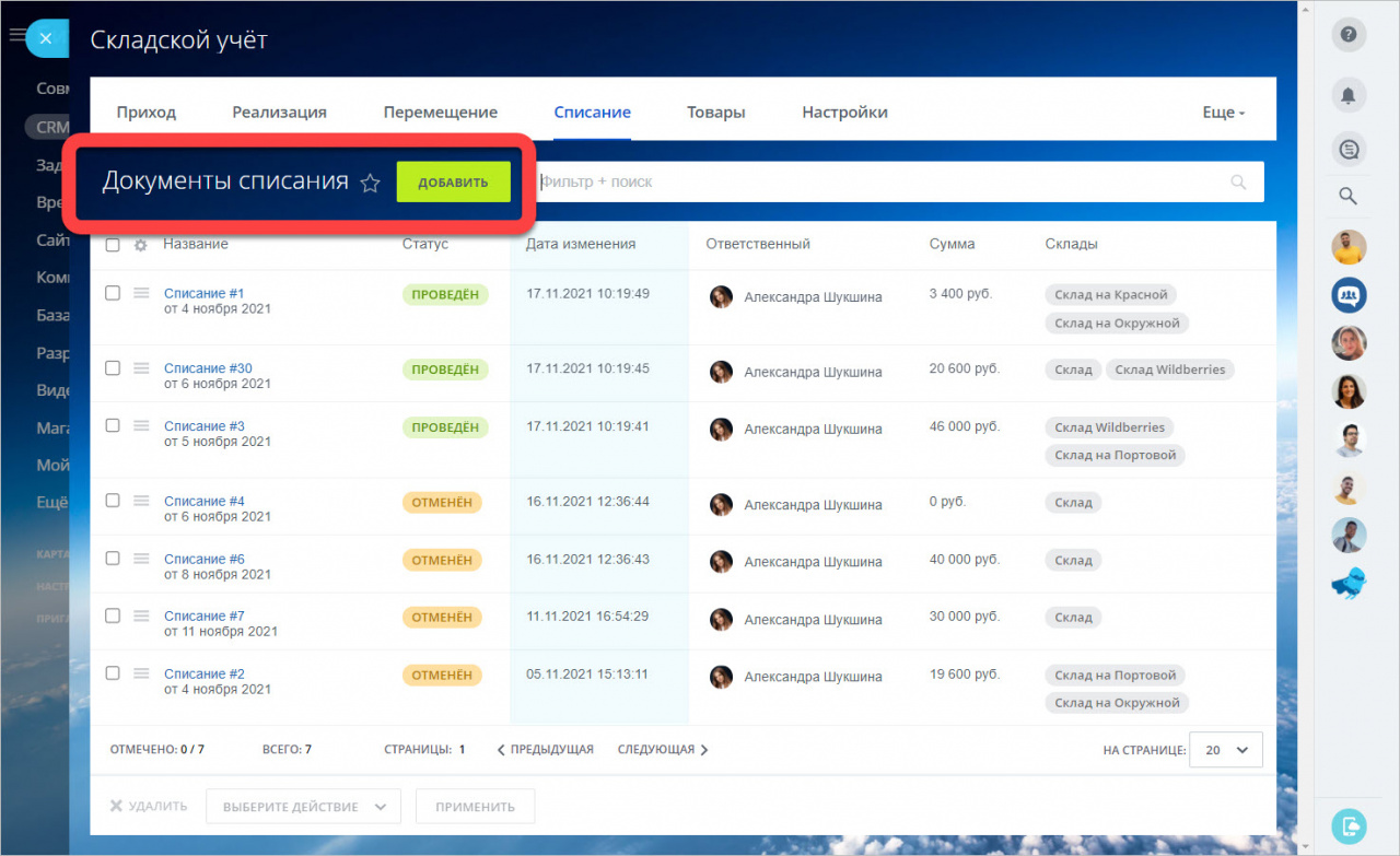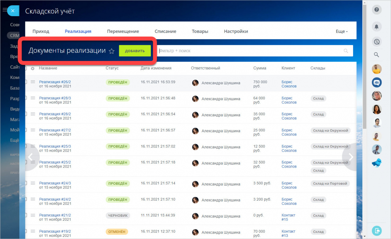 Начните вести складской учет в Битрикс24 и все поступления, списания и перемещения будут зафиксированы документально и отображены в системе. Сотрудники в режиме онлайн будут вносить данные, а вы сможете контролировать ваш бизнес. В итоге станет меньше недостач, излишков и краж, а также ошибок во время продаж и оформления заказов.