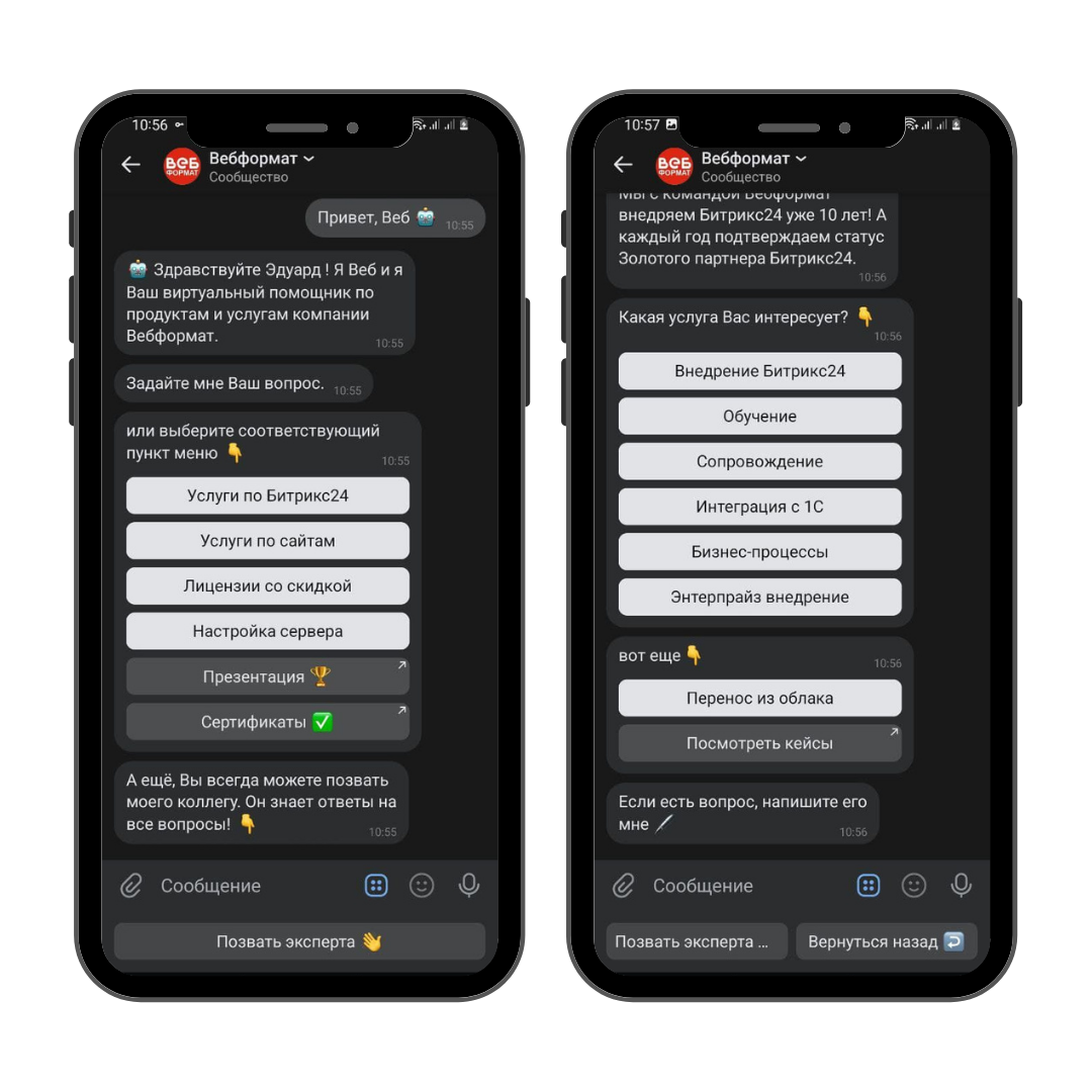 Наша компания занимается разработкой чат ботов и карт сценариев. Обратитесь к менеджеру за подробной информацией.