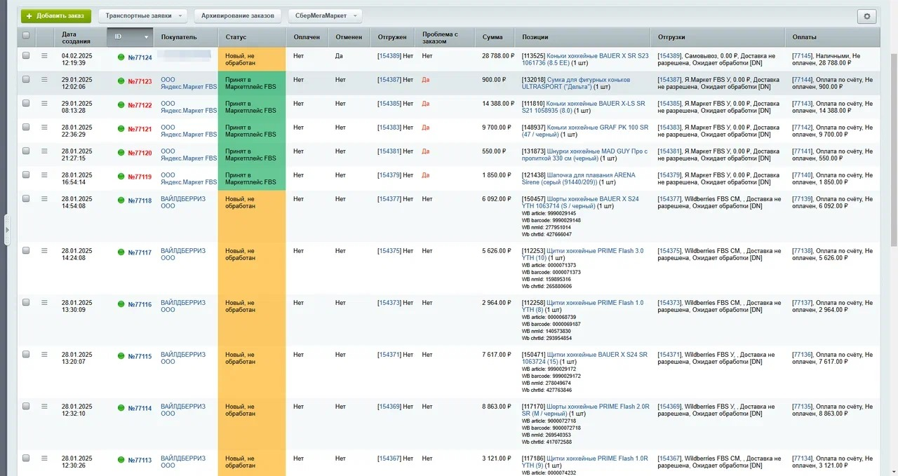 Например, у одного из наших клиентов основная часть заказов идет через маркетплейсы, а сайт служит витриной. Интеграция через модули позволяет автоматически обновлять статусы заказов, учитывать отгрузки и оплаты, а также отслеживать возможные проблемы — все это с минимальным вмешательством с нашей стороны.