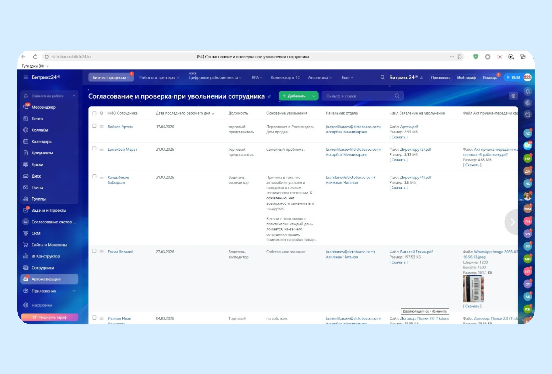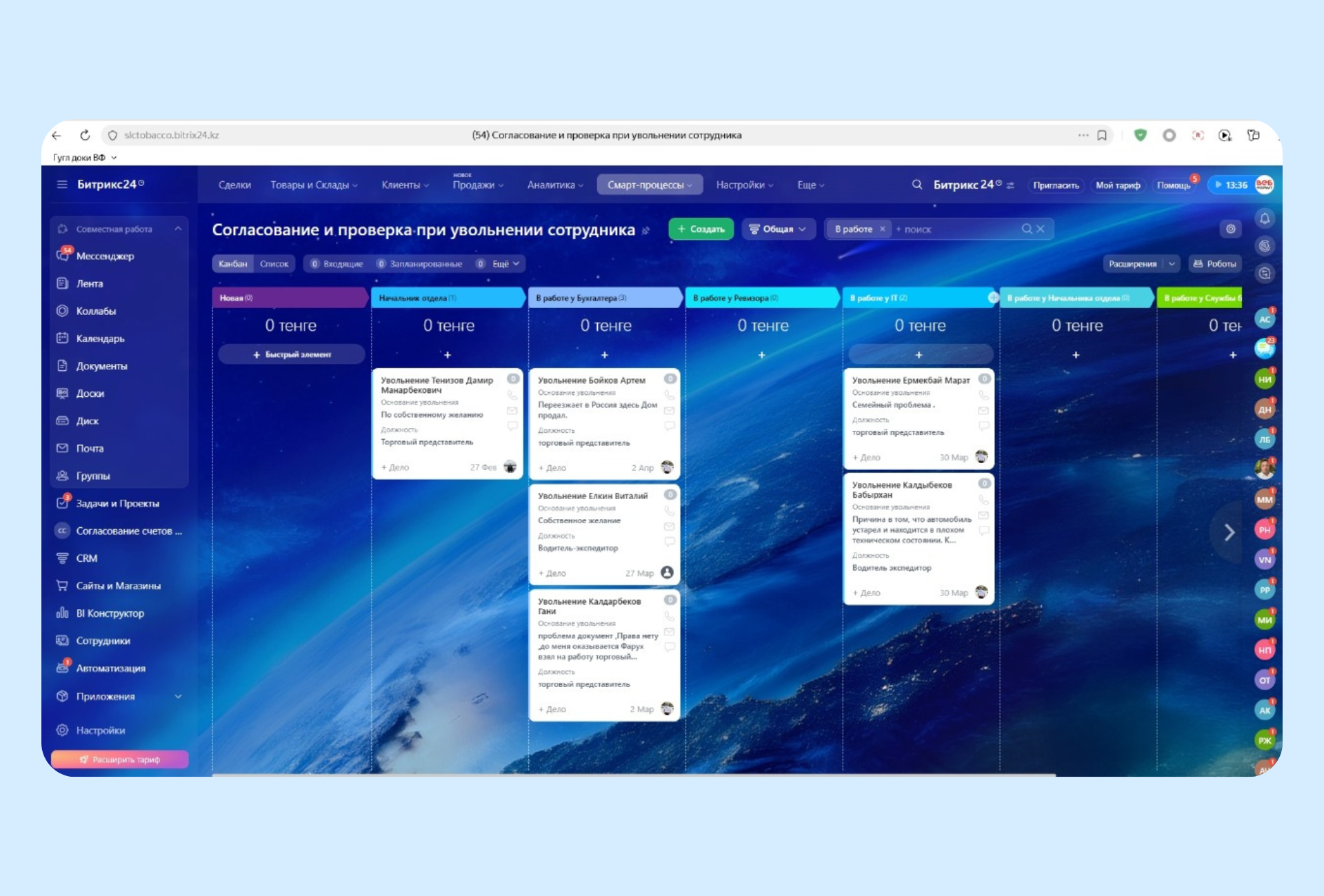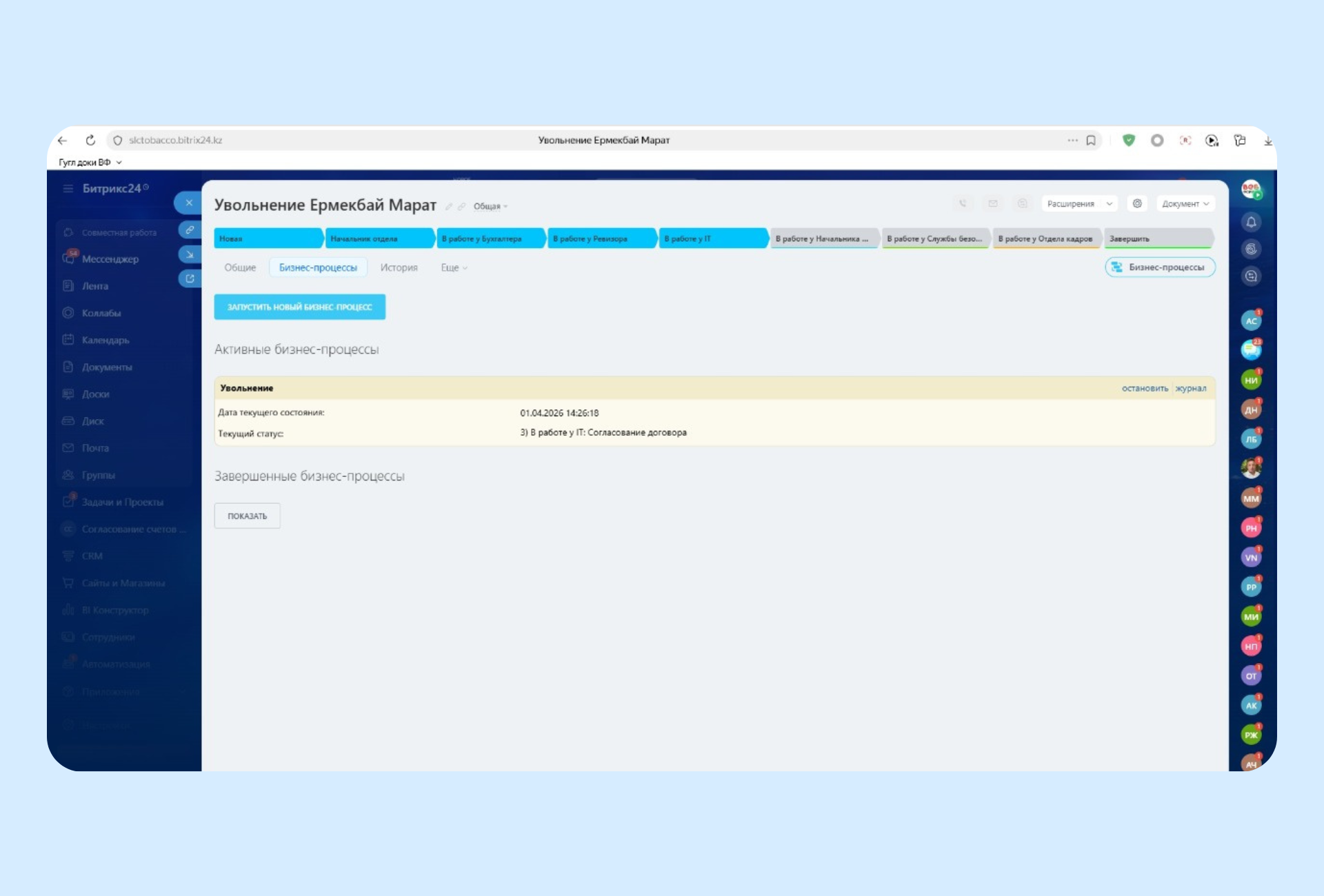 Автоматизация процесса согласования и проверки при увольнении сотрудника в Битрикс24