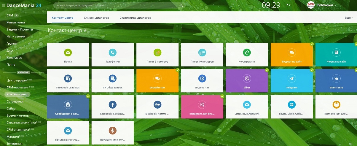 Подключены все каналы обращений клиентов (виджет на сайт, Vkontakte, Instagram, Telegram, Viber) · Проведено обучение по работе в Битрикс24.