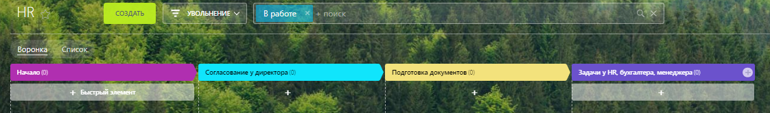 1. Создали воронку «Увольнение» со своими стадиями