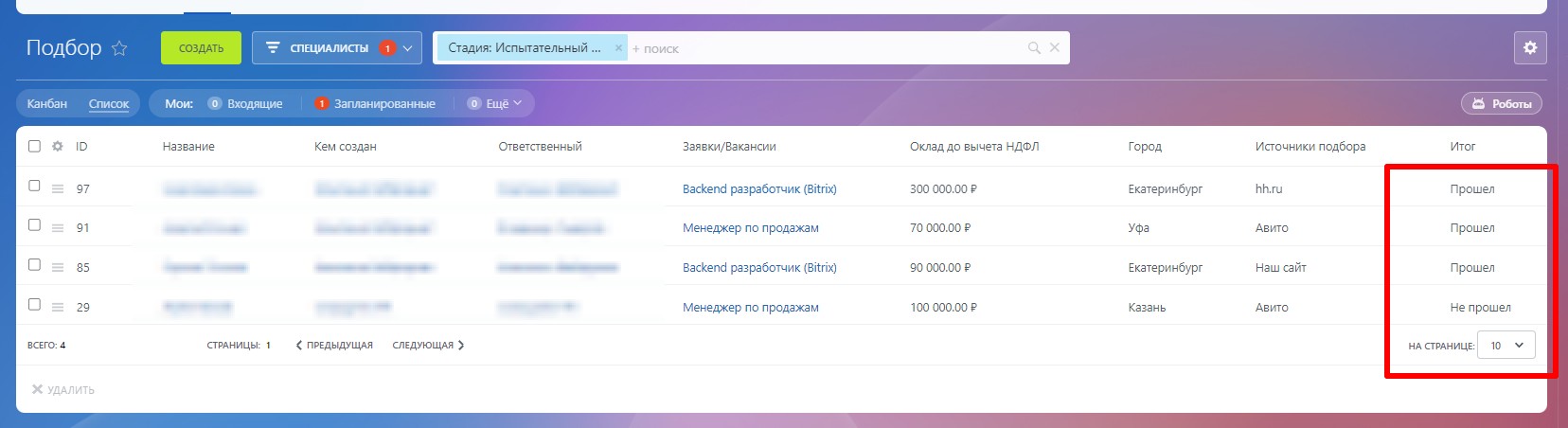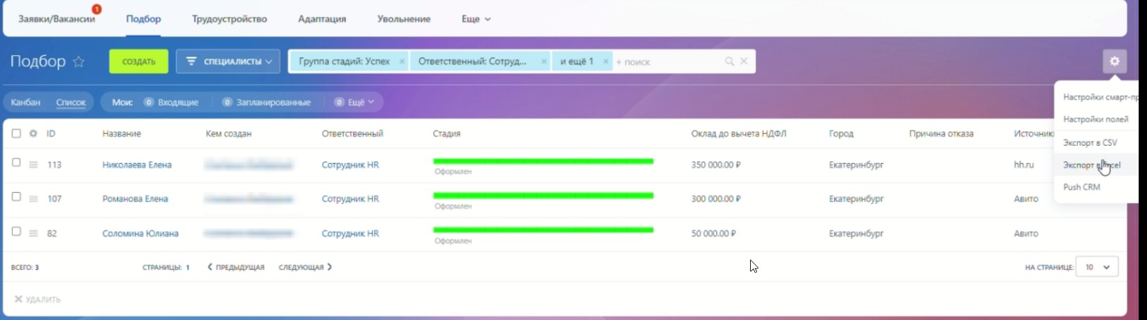 В системе мы реализовали все этапы подбора, которые имеются в компании.