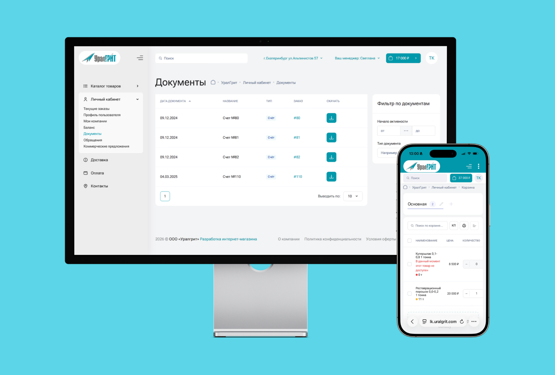 Компания "Уралгрит" — производитель современных абразивных порошков и один из самых известных брендов российского рынка антикоррозионной защиты.Основная цель компании — предоставить клиентам удобный инструмент для управления заказами и повысить лояльность за счет современного и функционального личного кабинета