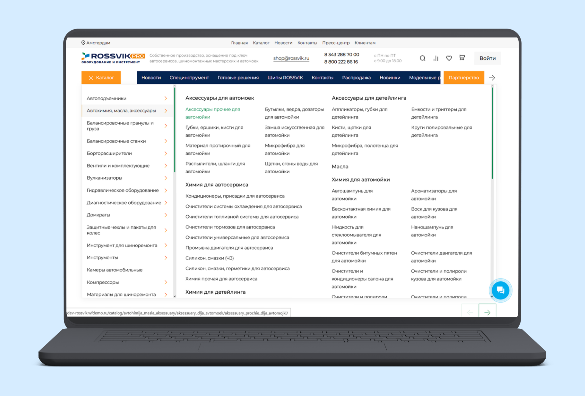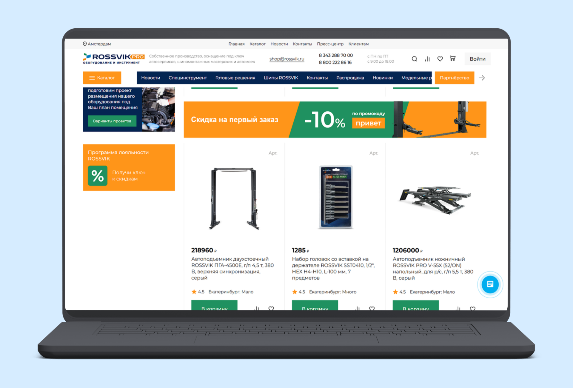 Особенность проекта в том, что торговая часть здесь тесно связана с контентной. Каталог дополняется экспертными материалами, FAQ, персональными блоками менеджеров и инженеров, формами консультаций, сервисными заявками и страницами вроде «Новинки» и «Распродажа», которые работают на той же товарной базе, что и основной каталог.